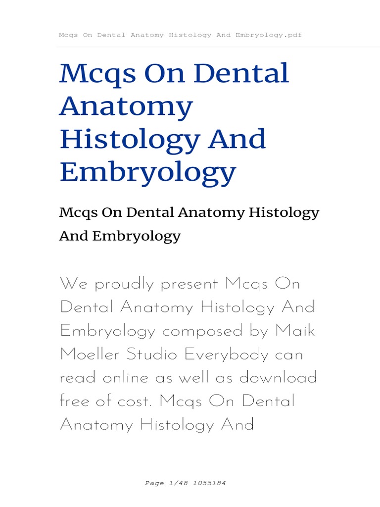 | Read Mcqs On Dental Anatomy Histology And Embryology Pdfcoffee |